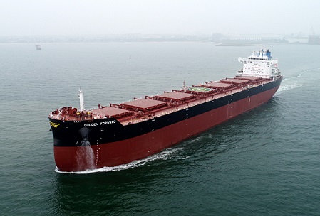 On June 11, No. 12 ship “GOLDEN FORWARD”, the second 82,000dwt bulk carrier built by Shanhaiguan Shipbuilding Heavy Industry Co. (SSIC) of DSIC, was completed and delivered to Frontline. This is the first ship delivered by SSIC since this year.