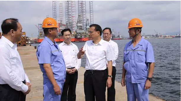 Premier Li stood by the sea, looking far into different types of rigs constructed for European and American clients by DSIC Offshore, and listening to the work report from DSIC Chairman and Party Secretary Liu Zheng. He pointed out rigs are used for exploiting offshore oil and gas, with precise technical requirements and low cost, where Chinese equipment has had the highest cost performance worldwide. As long as the cooperative opportunity of international productivity is fully seized, there will be a bright future in the Northeast China. On the assembly yard facing the sea, hearing that DSIC have successfully developed out 300-400 feet DSJ serial jackup and DSAT400 self-elevating life service platform with independent intellectual property right to fill a domestic gap in this field by means of technical breakthrough and innovation, import substitution rate of support equipment for independently developed 300-400 feet jackup has achieved 75% and complete machine in export products achieved 60%, Li said gladly, in recent years, you have challenged difficulties bravely in your creation, and dared to play in the international market, which have demonstrated quality, competency and brand effect of Chinese equipment.