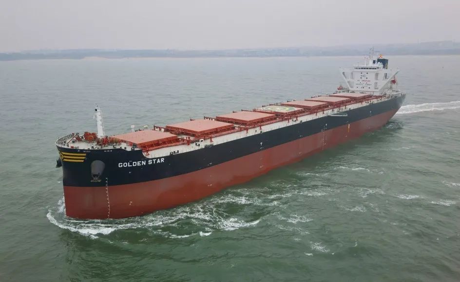 The carrier is the first new energy-saving and environmentally friendly ship built by SHGSIC for GOLDEN OCEAN GROUP LIMITED. The carrier has a total length of 227.2 meters, a width of 36 meters, a depth of 20.35 meters, a design draft of 11.5 meters, a speed of 14.1 knots, 7 cargo holds with a capacity of about 105,000 cubic meters. It is registered with ABS classification Society and is flying the Marshall flag. It meets the requirements of IMO Tier III emission standards and has the characteristics of fast sailing, low energy consumption and strong adaptability. In terms of energy consumption index, environmental performance and reliability requirements, it has reached the world level of similar vessels.
