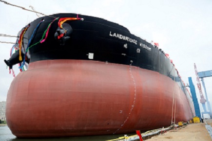 On May 22, No. 2 308,000dwt VLCC built by DSIC for Landbridge Group was officially signed and delivered. The representatives of DSIC, Landbridge Group, BNP Paribas and CSTC signed on the delivery certificate. Yao Weixin, President of Landbridge Group, Yang Zhizhong and Zhang Yuhuan, leaders of DSIC, and directors of relevant departments attended the ceremony. Ms Ye Fang named the ship "Landbridge Wisdom".