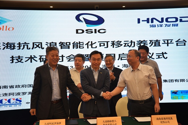 On Mar. 20, DSIC co-held the smart aquaculture platform project review press conference and strategic cooperation framework agreement signing ceremony with Dalian Apollo Maritime Service Co., Ltd. and Hainan Ocean Development Co., Ltd. in Haikou, Hainan province, where DSIC GM Yu Fengping and Deputy GM An Yumin attended the meeting and signed the framework agreement.