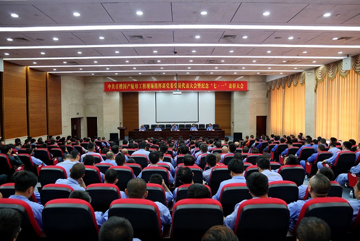 The Party Member Congress and Commendation Conference in memorial of CPC founding was held by the first homemade aircraft carrier project site command CPC committee in DSIC on July1,2019,Liu Zheng,DSIC party secretary and chairman,and commander in chief and party secretary of the aircraft carrier project as well, reviewed and summarized two-year work status of the aircraft carrier project CPC committee and proposed specific requirements in forthcoming work;Yang Zhizhong,DSIC deputy Party secretary and general manager, announced the decision for appraisal and commendation of the advanced Party collectives and individuals within the aircraft carrier Party committee;and Xiao Shi,DSIC deputy general manager, and deputy commander in chief and vice Party secretary of the aircraft carrier project as well,deployed the next-phase key tasks. Han Hui,DSIC vice Party secretary, chairman of the labor union, and vice Party secretary of the aircraft carrier project as well, attended the conference, together with more than 300 Party members’ representatives from 31 Party branches of the aircraft carrier project Party committee.