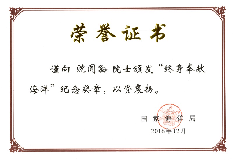 The State Oceanic Administration recently held the national conference on ocean science and technology innovation. On the conference, recommended by CSIC, Shen Wen-sun from DSIC, academician of Chinese Academy of Engineering, won the commemorative medal “Lifetime Dedication to Ocean”.