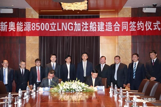 Oct. 18 witnessed the signing ceremony of 8500m³ LNG bunker project between DSIC and ENN Energy Holding Ltd. in Zhoushan, Zhejiang. The contracting of this project will further establish the leading place of DSIC in building liquid and gas ships while marking that DSIC has seized the market opportunity in the field of specialized LNG bunker. DSIC General Manager Yang Zhizhong and ENN Energy CEO Zhang Yesheng signed the contract on behalf of the two parties, wehre DSIC Chief Engineer and Deputy General Manager Lu Xiaohui and relevant departmental leaders from the parties attended the signing ceremony as witnesses.