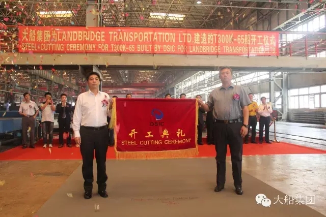 On July 22, DSIC has conducted the steel cutting ceremony of 65# 300000 DWT VLCC constructed for Shandong Landbridge Group in the steel distribution center, where DSIC Party Secretary and standing Deputy Chairman Liu Zheng and Landbridge Group Chairman Ye Cheng have attended such ceremony to inaugurate the steel cutting together.